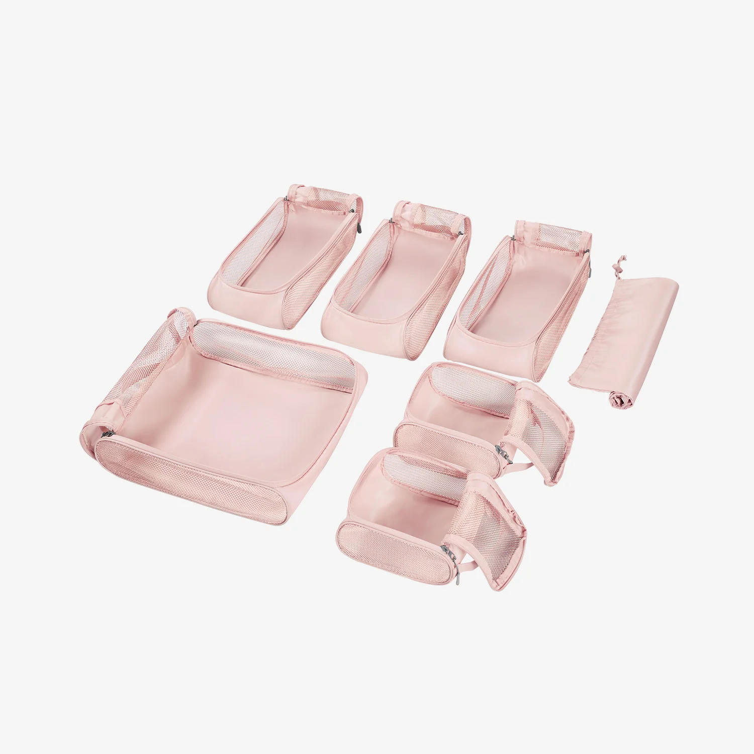 Make travel and clothes storage easier with Bagsmart's functional 7 PCS Packing Cubes For Suitcases. Featuring breathable mesh designs, these stylish packing organizers are lightweight and durable. Equipped with the mini plastic frame to help the packing cubes stay straight and hold their shape, these sturdy packing cubes make the best companion for clothes storage.