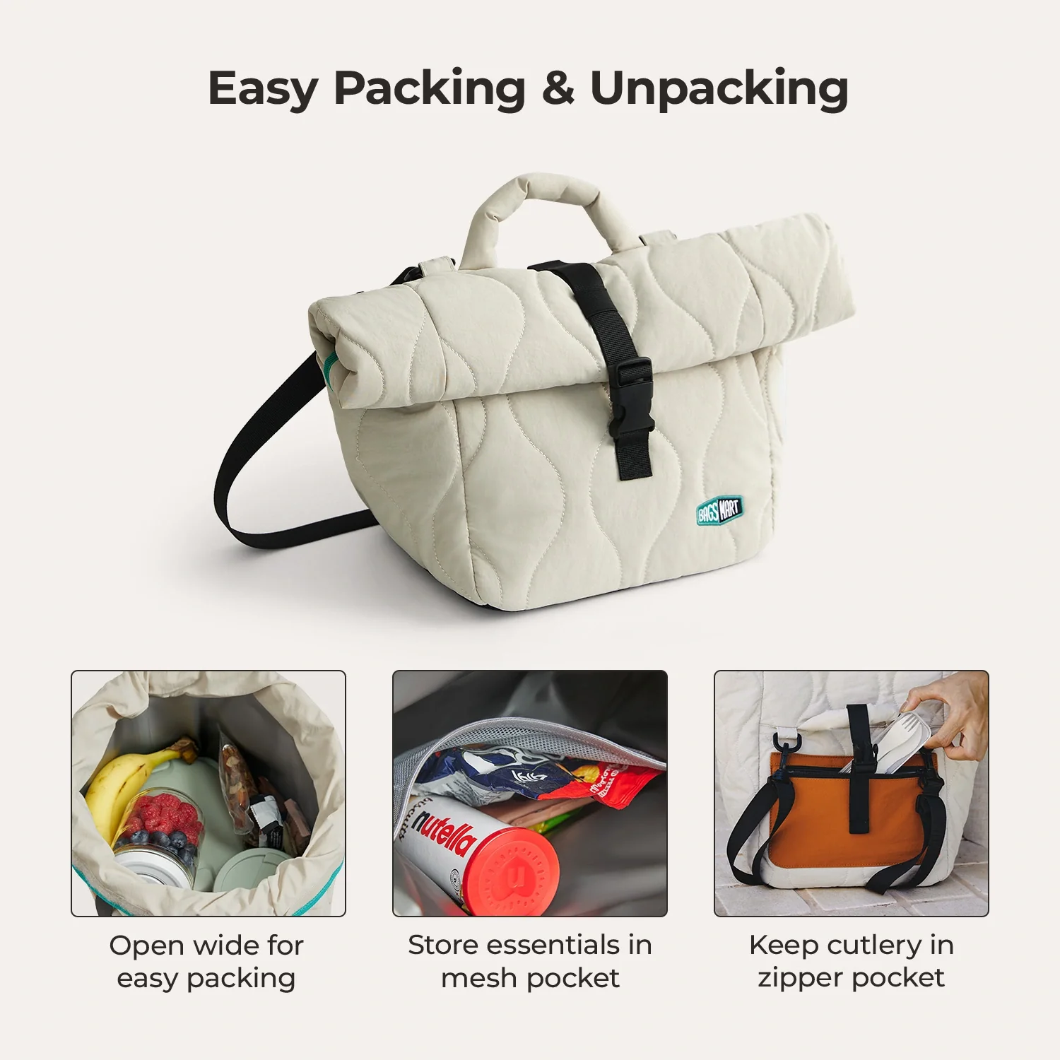 Meet the Paz(Walker) Lunch Bag, your trusty tote for tasty treats! With its roomy, roll-top design and utensil-ready pockets, it’s perfect for packing up every nibble and nosh. Durable, insulated, and easy to clean—this bag keeps your meals fresh. Whether you’re heading to the office or planning a picnic, this bag can handle it all. It's a true lunch legend!
